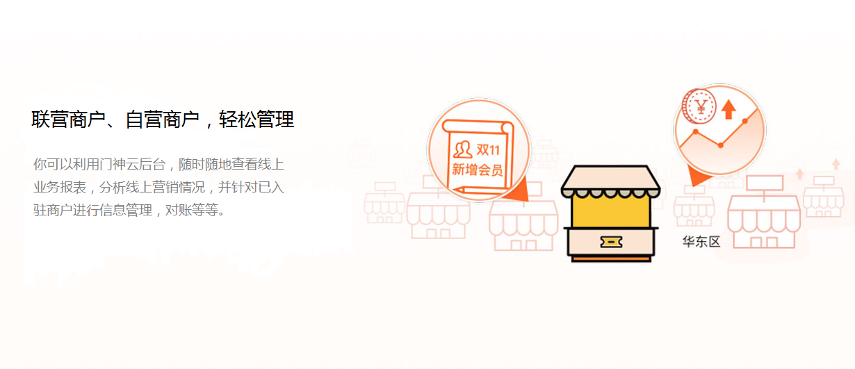 专注于新零售商场线上线下一体化营销管理解决方案,为商场提供互联网一体化的产品和服务,为零售、餐饮、休闲、娱乐等商用消费场所提供全套的智能的运营策划方案。系统上线于2016年12月,定位为客户提供基于云计算和大数据分析的商场互联网一体化解决方案的服务,可为传统零售和服务行业提供先进的移动互联设备和云端应用,方便客户低成本搭建O2O营销管理系统。传统卖场具有丰富的实体店经验更有助于线上推广的进一步扩张,吸引互联网时代所形成的新一批消费者,激活潜在客户。 利用互联网更准确地找到目标,从而将他们转换为线下客户,以引流活动提高到店数量,以网络推送方式把商品和服务传达到消费者的手上,根据线上消费者的建议进行改进,提高用户参与度。 最终目的是通过实体店与线上商城,满足不同渠道和不同客户群体的个性化需求,打造多倍利润。